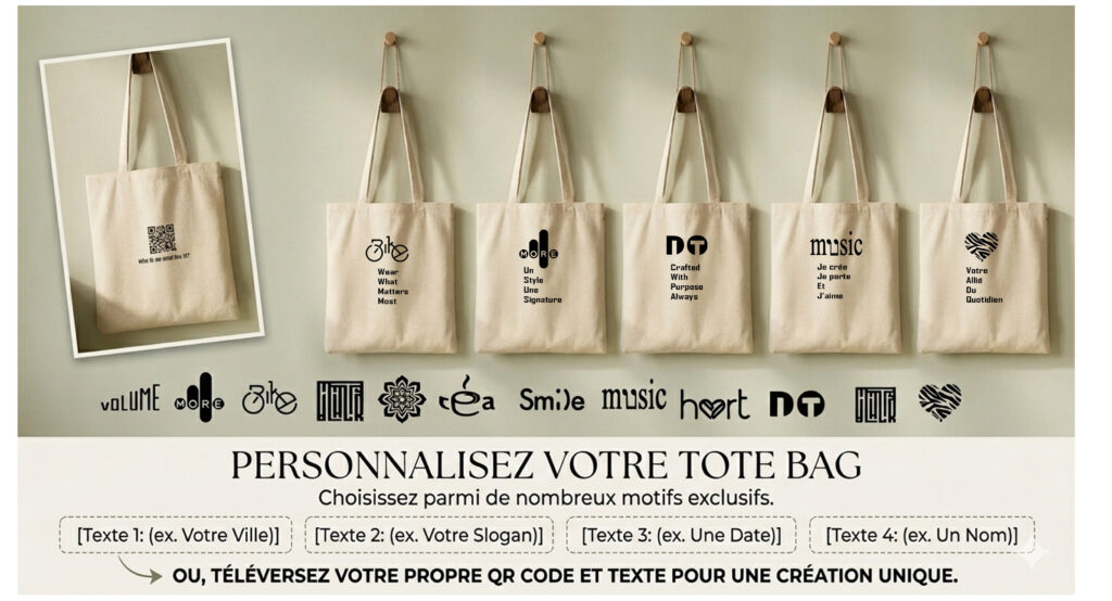 Les Tote Bags Personnalisables (de 5€ à 7,11€ selon le modèle choisi)