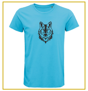 T shirt en coton – tailles: S, M, L – couleur bleu – plusieurs motifs au choix – personnalisable