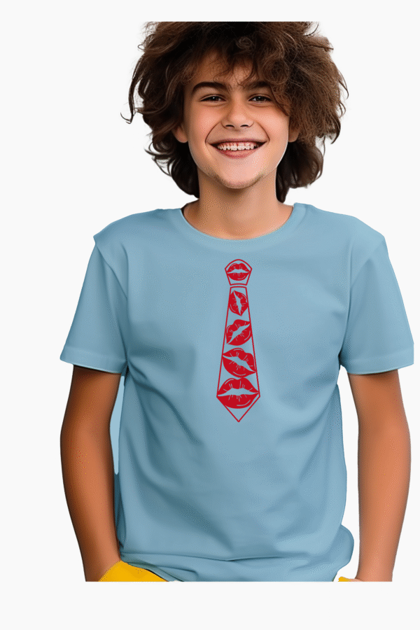 Apportez une touche d’originalité et d’élégance à votre style avec ce t-shirt 100% coton, doux et agréable à porter. Son motif cravate en vinyle découpé, aux lignes géométriques modernes, attire le regard avec subtilité. La teinte rouge avec motif ‘Bisous’.
