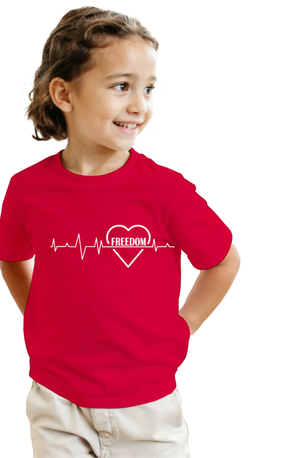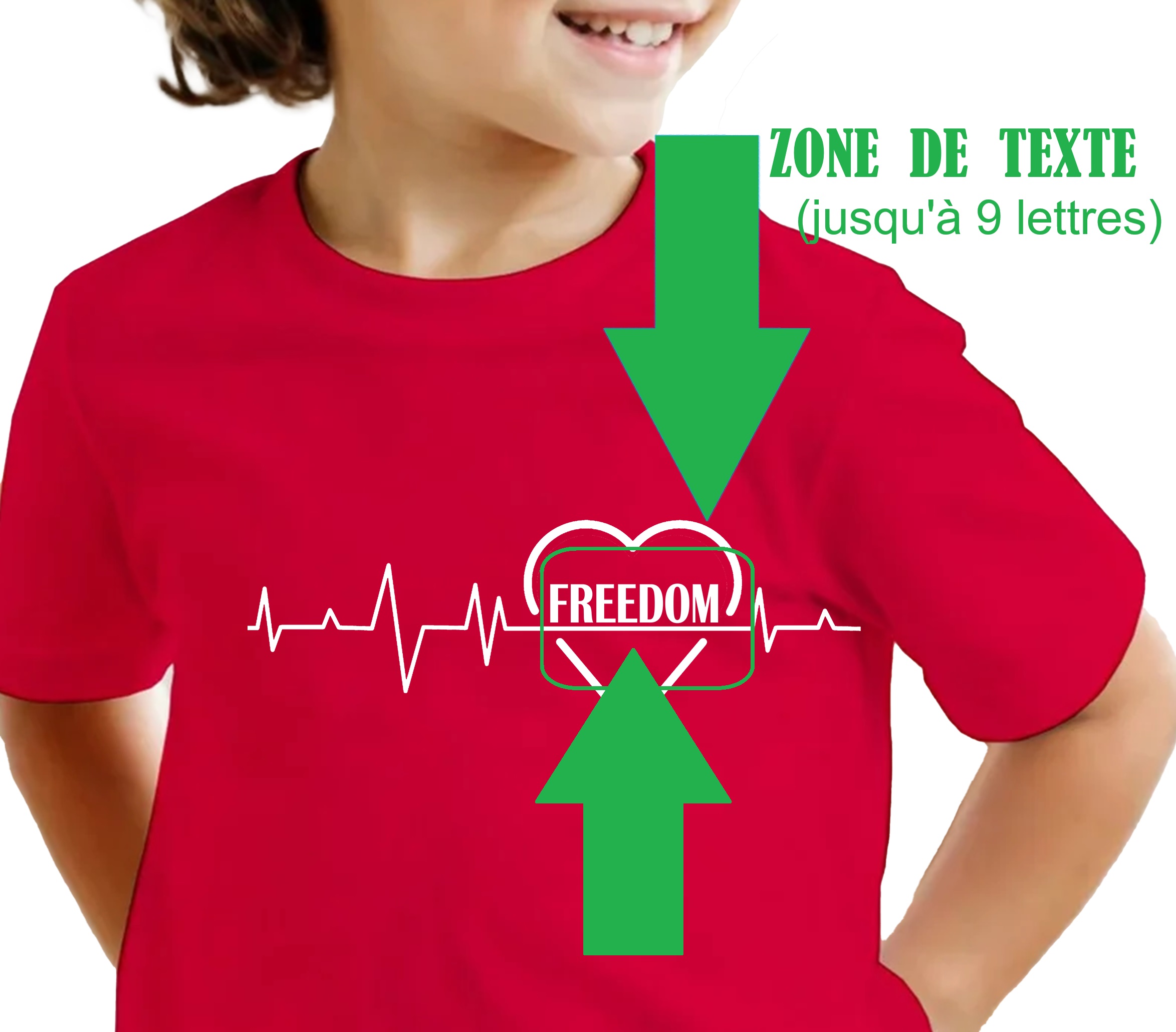 T-shirt en coton avec motif: cœur. Personnalisable avec le texte contenant jusqu’à 9 lettres.