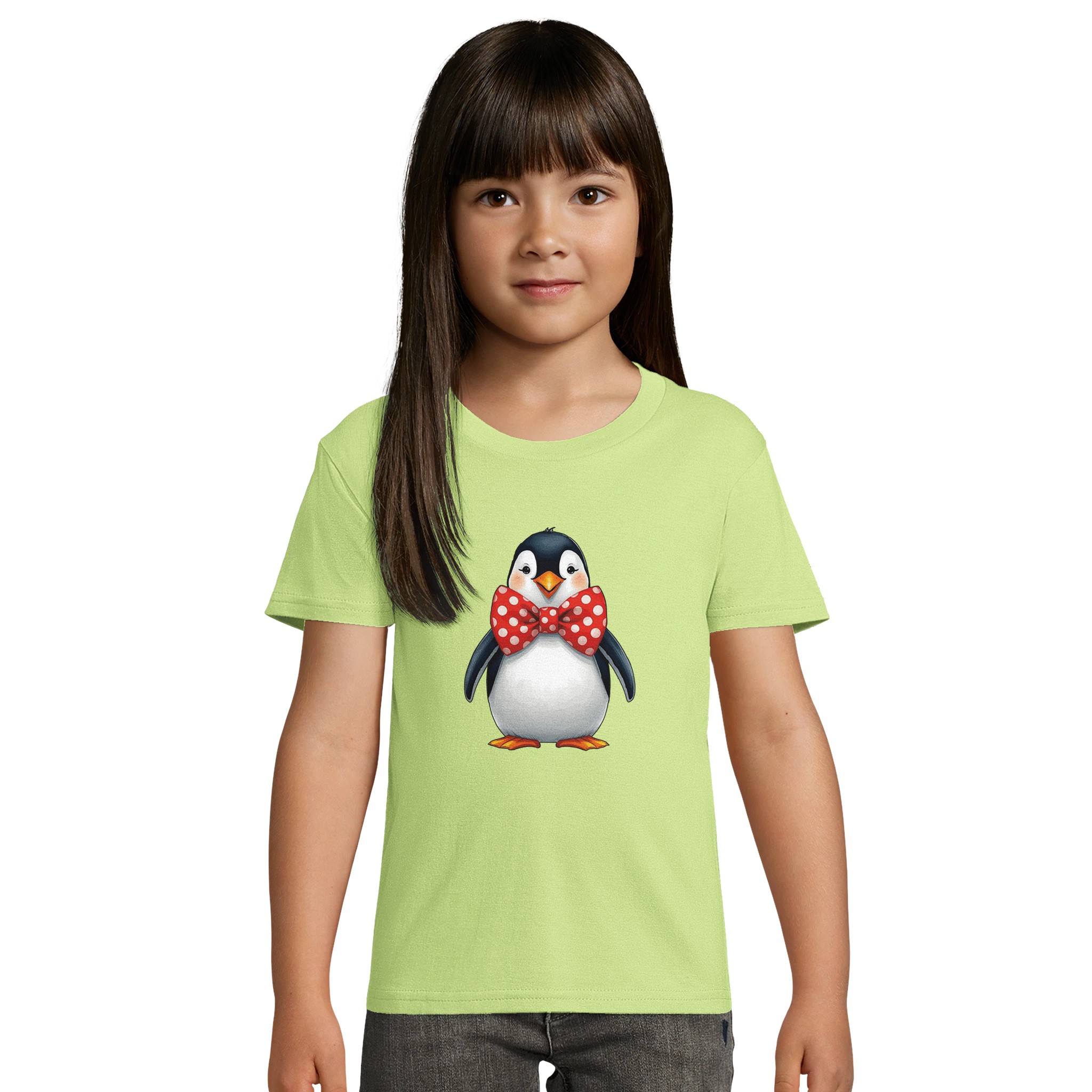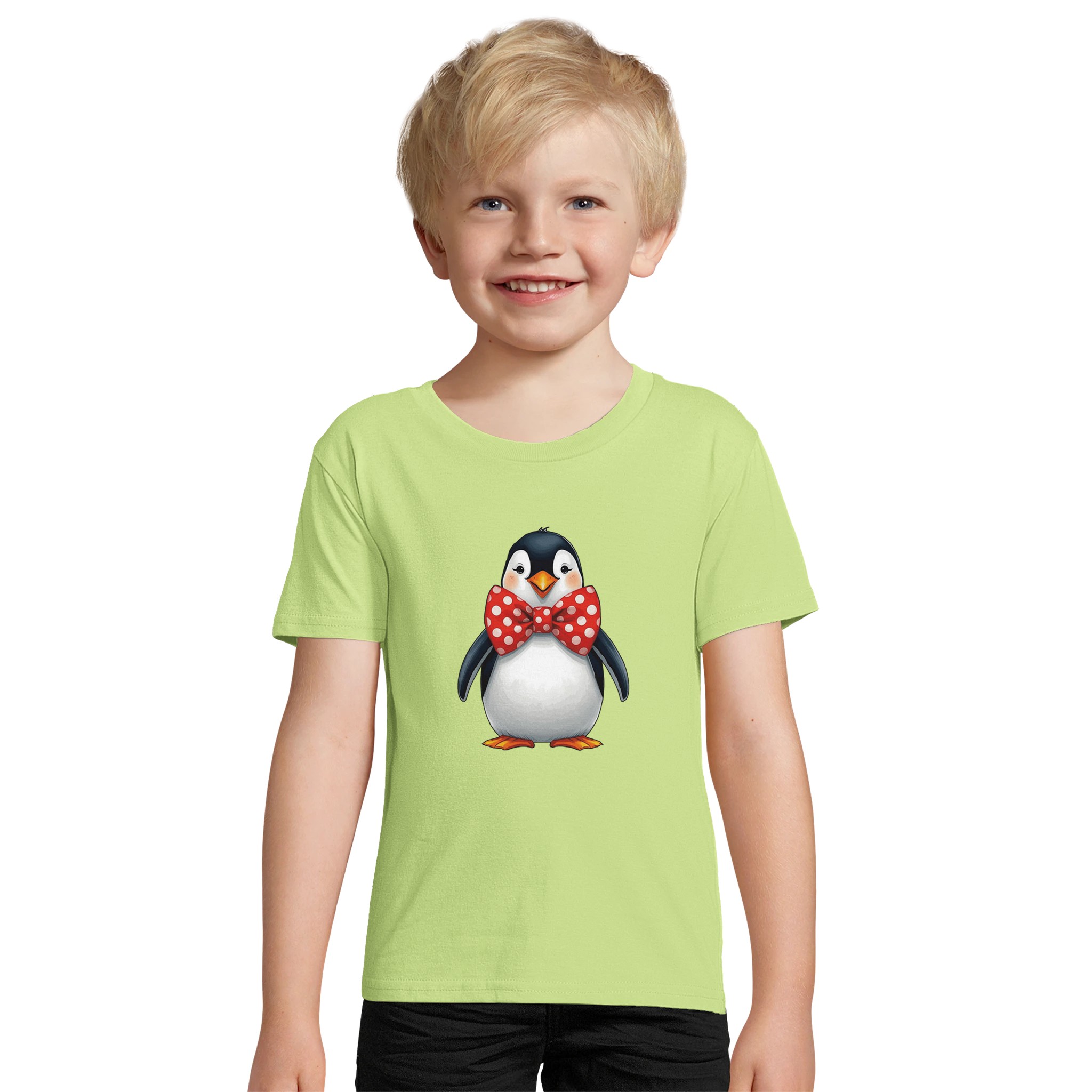 T shirt enfant, tailles: 2,4,6,8,10,12 ans, couleur: verte pomme, motif: Pingouin