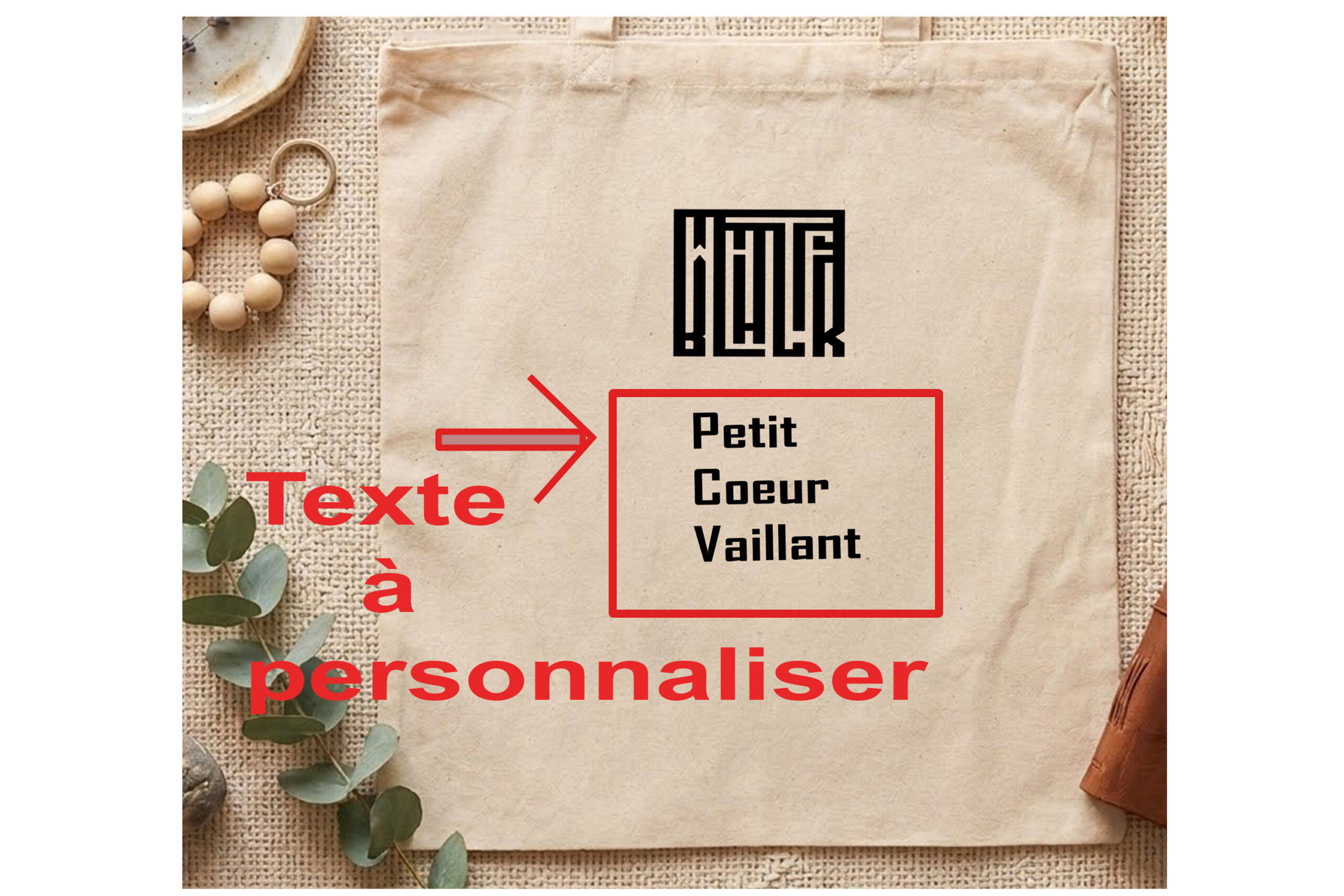 Crée un tote bag unique selon tes envies ! Choisis d’abord un motif parmi plusieurs modèles, puis personnalise-le avec tes propres textes grâce à 4 champs à remplir.